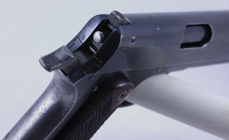 Close-up of sight safety and hammer. Also notice the