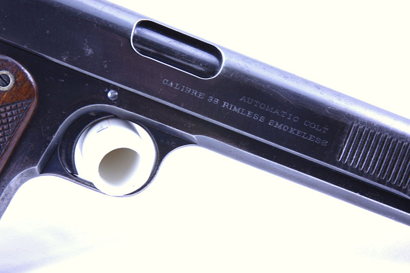 "AUTOMATIC COLT" over "CALIBRE 38 RIMLESS SMOKELESS". Slide
