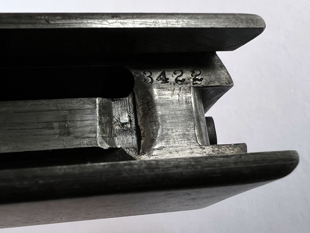 Browning's Patent - slide markings, serial number 3422 on left side of frame,
