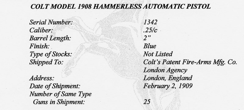 gun shipment on April 22, 1913 to Colt's Patent Firearms