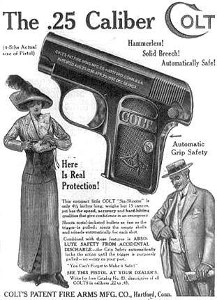 the Colt Model 1908 Vest .25 ACP (left) and a page from a
