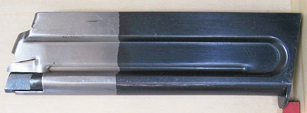 Original two-tone magazine. Hole in rear of magazine (visible in