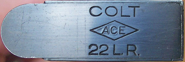 Base plate of the magazine with COLT over ACE in a diamond over 22 L.R.