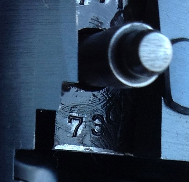 Colt 1911A1 1937 Navy serial number 711730 - Close-up of markings on