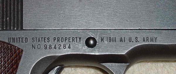 STATES PROPERTY" over the serial number with "M1911A1 U.S. ARMY"