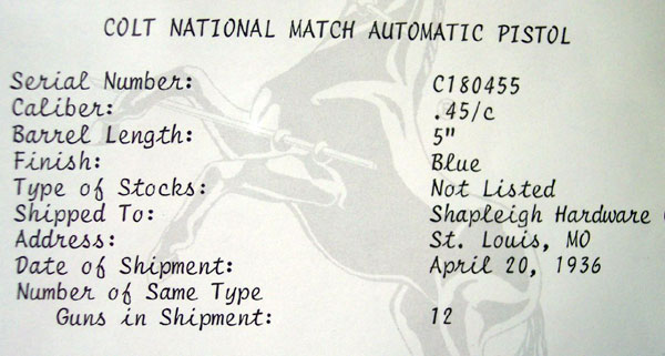 Colt National Match Serial Number C180455 with