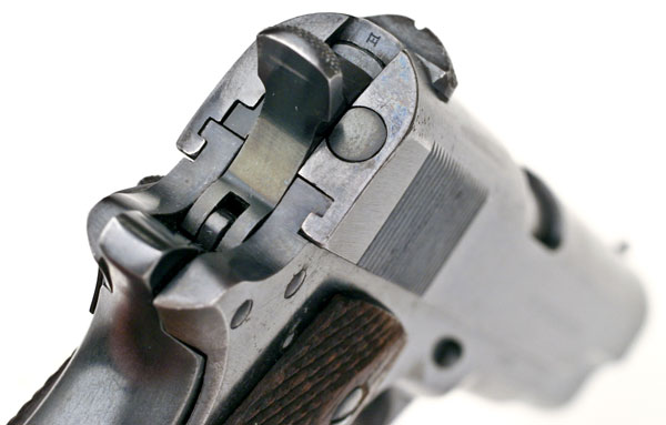 Horizontal serifed "H" on rear of slide above firing pin stop.