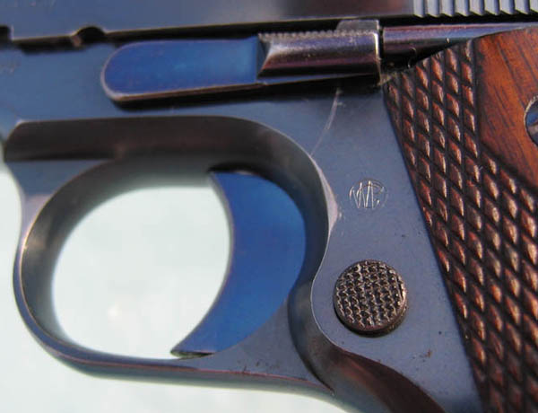 This example bears the ordnance mark W.G.P., for Major Walter G. Penfield, in the form of a monogram stamped on the left side of the frame above the magazine release.  Penfield inspected these pistols from January 2, 1911 - September 30, 1914.  Serial numbers of Model 1911 pistols inspected 1 - 101500.