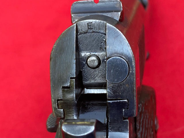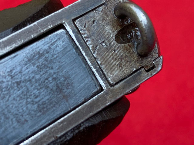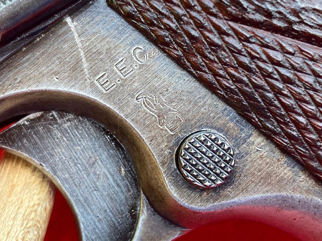 of the trigger guard. This "E" is the same as the mark on the bottom of the