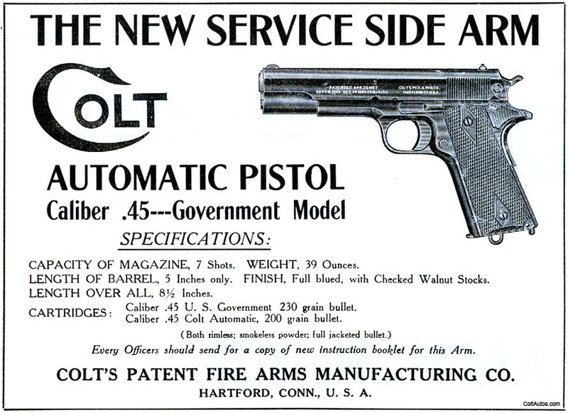 The New Service Side Arm, Colt Automatic Pistol, Caliber .45, Government Model (ca. 1912)
