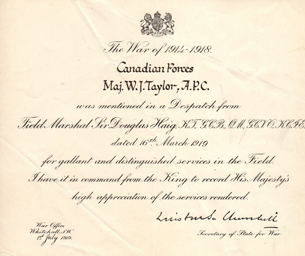 August 4, 1914. Major Taylor was mentioned in two dispatches