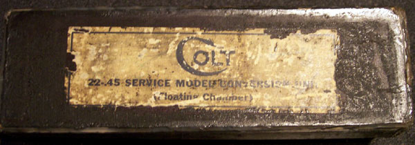 This unit was shipped February 22, 1943 to the United States Government, Transportation Officer, Fort Myer, Rosslyn, Virginia for Ordnance Officer.  Unit was one of 50 in the shipment and was process on Colt Factory Order number 1979.