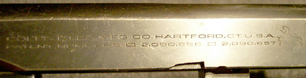 Complete set of pre-war components.  Rampant Colt is present on the left side of slide only (on some pre-post war numbered units, Rampant Colt logo visible on both sides of slide).