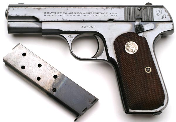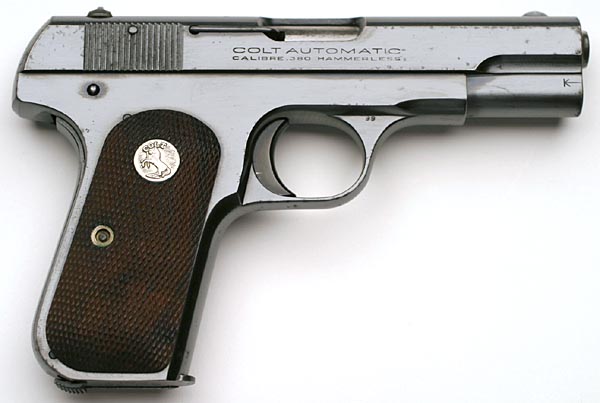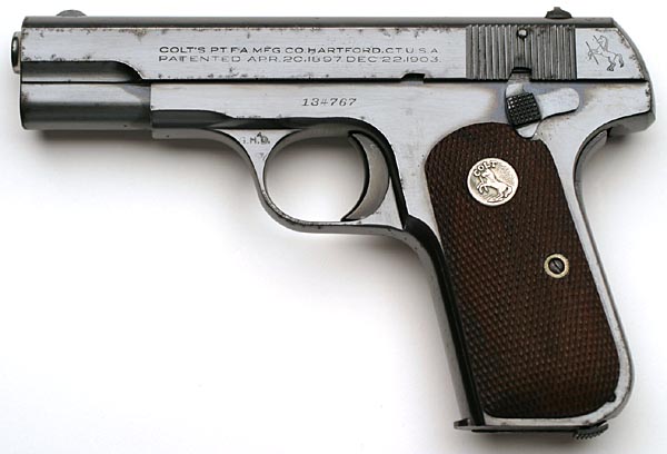 Colt 1908 Pocket Hammerless .380 ACP serial number 134767 G.H.D. Inspected - Left side of Colt Model M .380 ACP serial number 134767. |