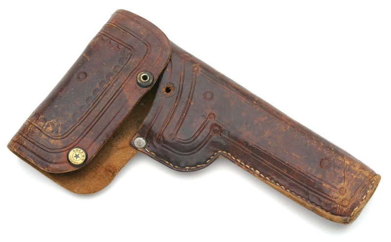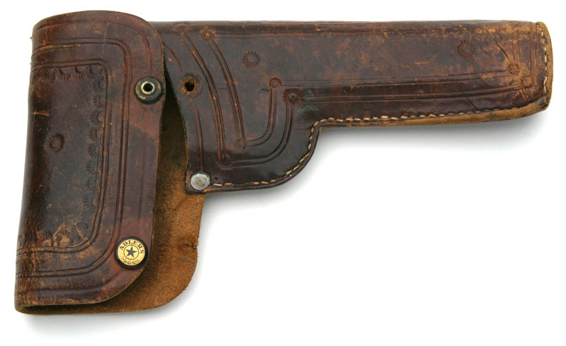 Pistol came with a leather Hip holster, with a snap marked "Adlers".