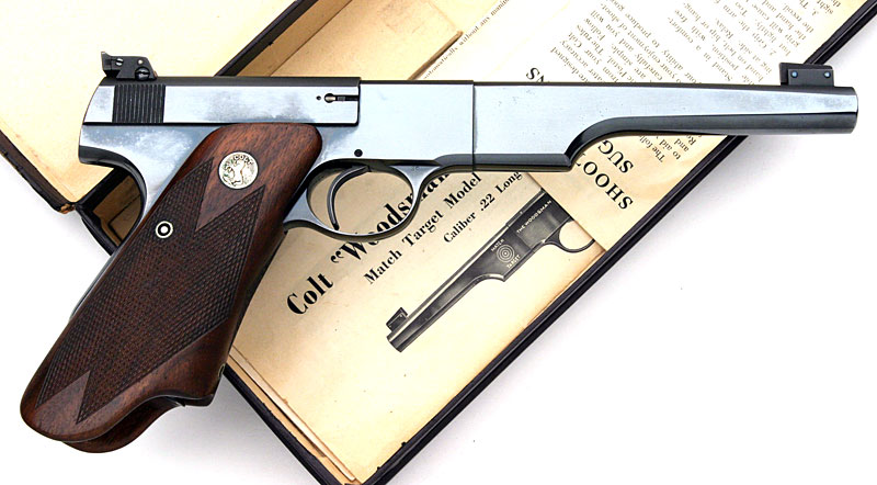 Colt Woodsman Match Target First Series - Stevens sight.  Note how the top of the slide, barrel and rear of slide and frame are matte finish.