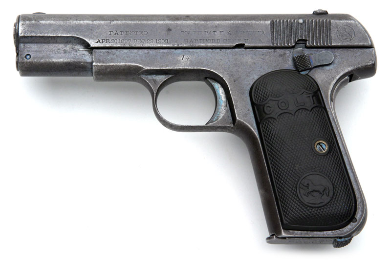 Colt Model 1908 Pocket Hammerless .380 ACP serial number 14 - Right side view. |