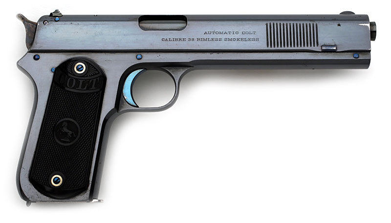 Colt Model 1900 Serial number 4238 retains most of the original finish and shows very little wear.  Most of the original fire blue remains on the face of the trigger.  It's fairly uncommon to find examples of the Colt Model 1900 with this much original finish.