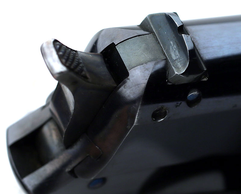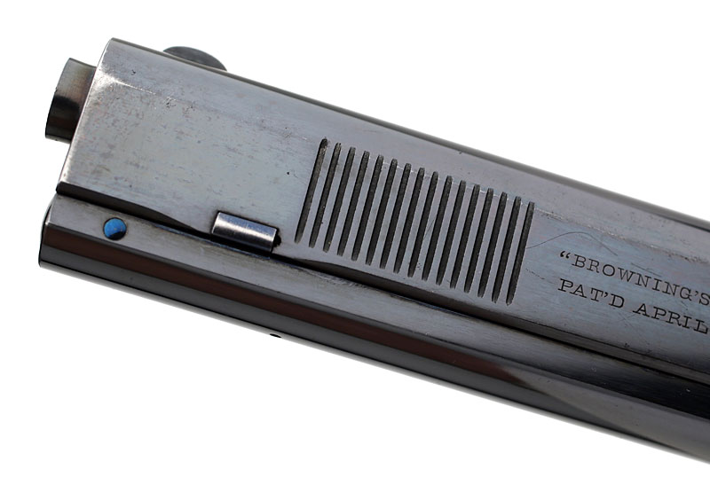Top of slide and chamber through ejection port showing the early original high polish blue.