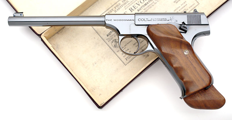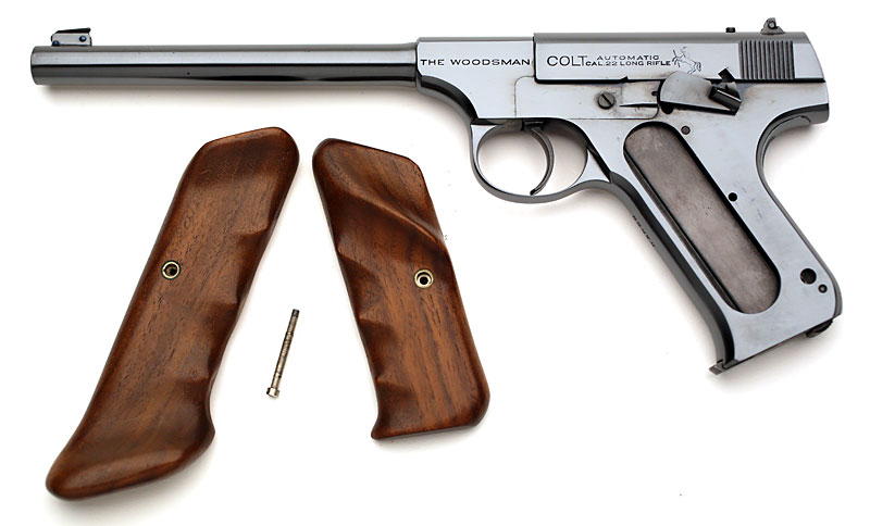 Colt Woodsman Target Pistol .22 LR Serial Number 55070 - pistol with custom target grips removed.