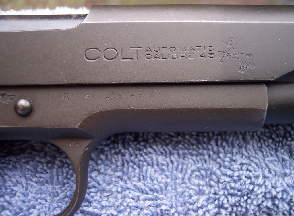 Colt Model 1911A1 .45 ACP Serial Number 860103 (Left Side) - "G.H.D." inspected and "P" proofed on left side of the frame. Commercial slide marking on right side of slide.
