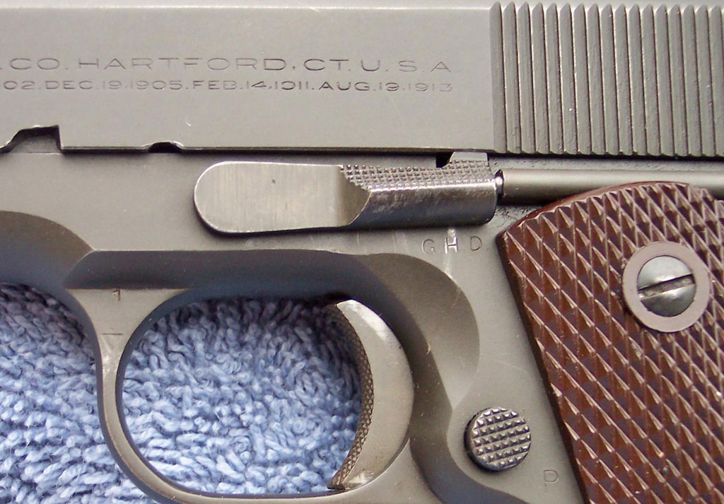 G.H.D. - Inspected by Ordnance Inspector Brig. General Guy H. Drewry, Springfield Ordnance District, Army Inspector of Ordnance June 17, 1942 - July 15, 1945, 1911A1 Pistols serial numbers 845000 - 2360600 (approx.) (Some in the 860003 - 860500 rage are marked W.B.)