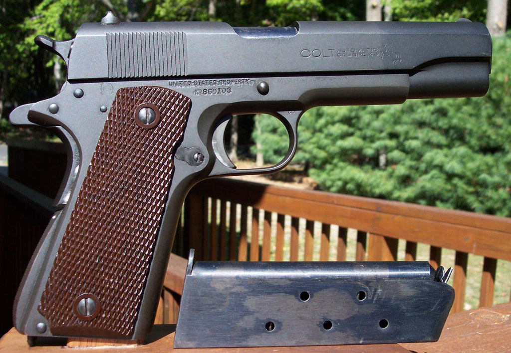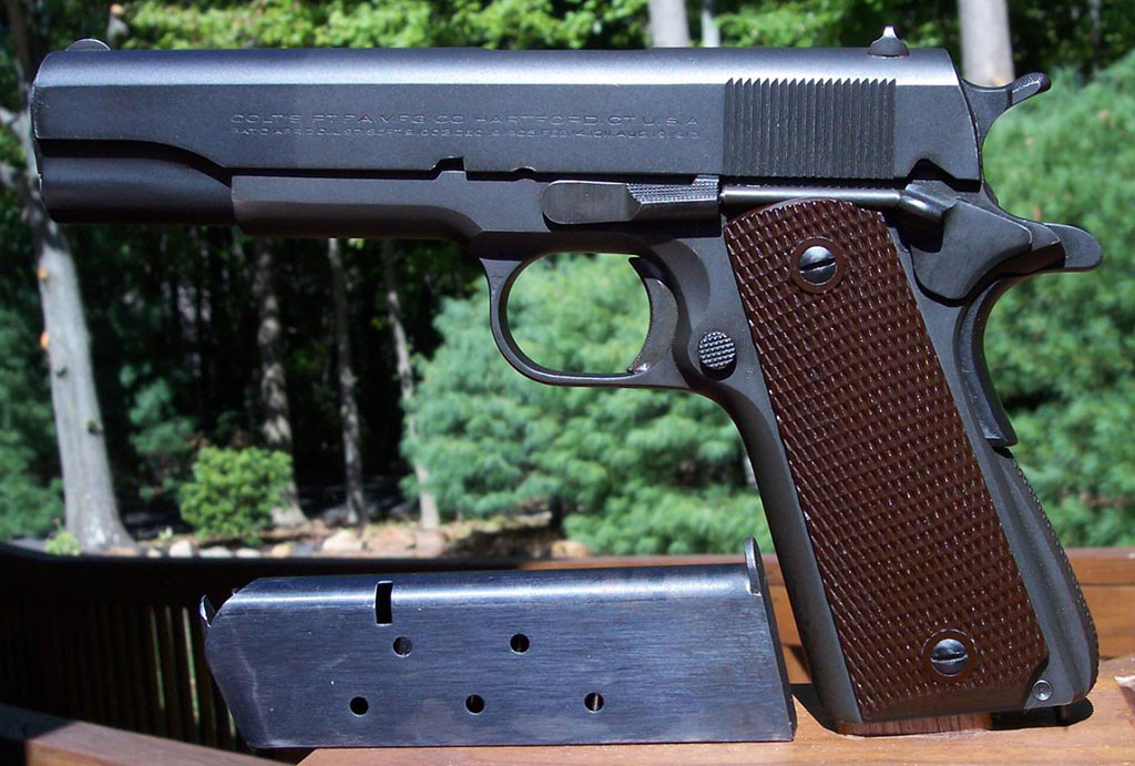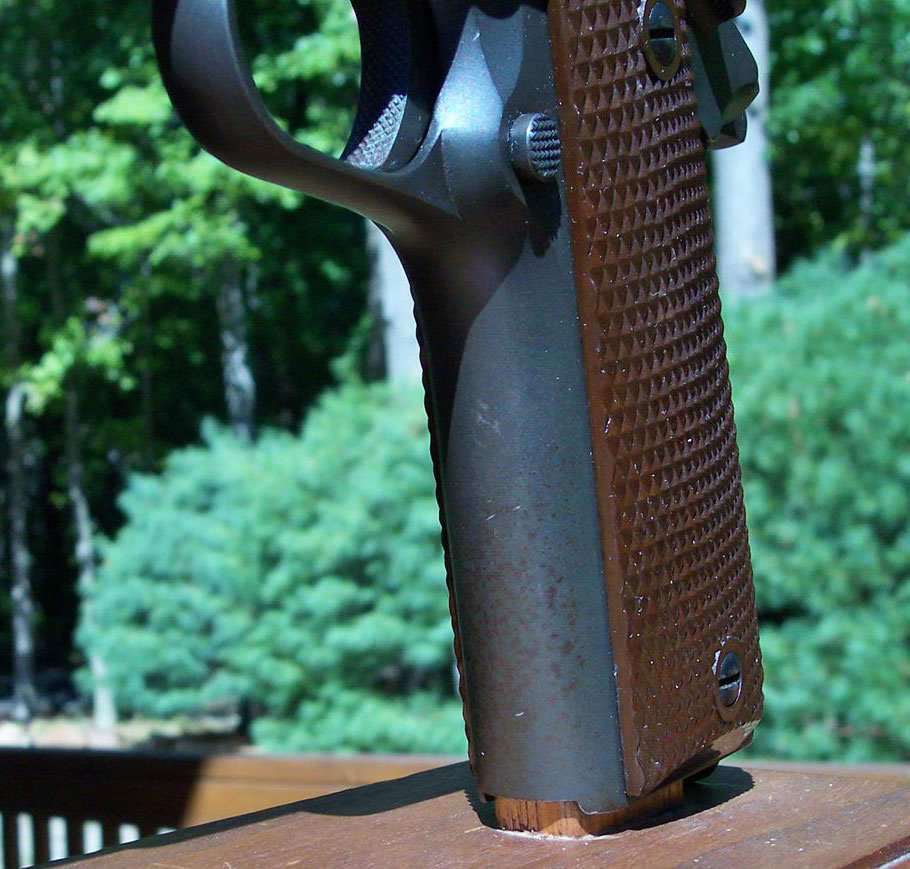 Commercial Government Model magazine for this variation were sandblasted and then blued. |
