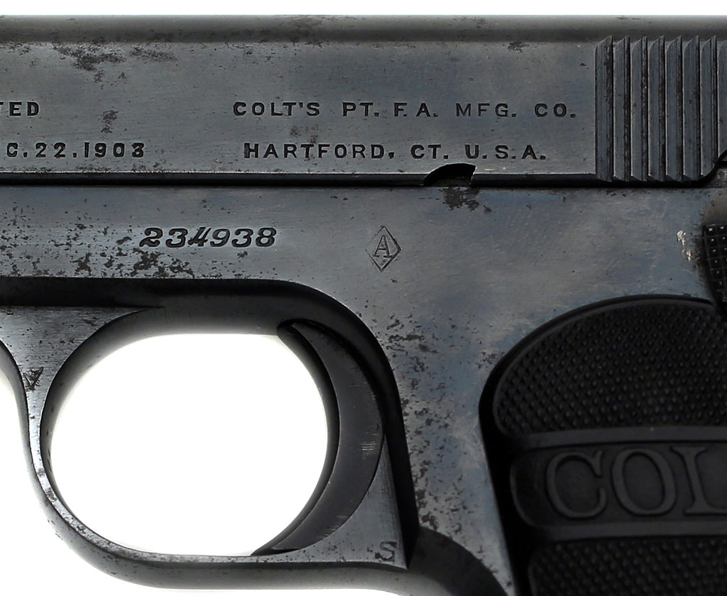 Colt Model 1903 Pocket Hammerless .32 ACP serial number 234938 - Close-up of Diamond "A" marking on the frame.