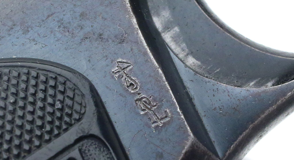 Colt Pocket Hammerless 1903 .32 ACP serial number 378068 (ca. 1921) - note the "4.21" that's been struck through on the right side of the frame just behind the trigger.