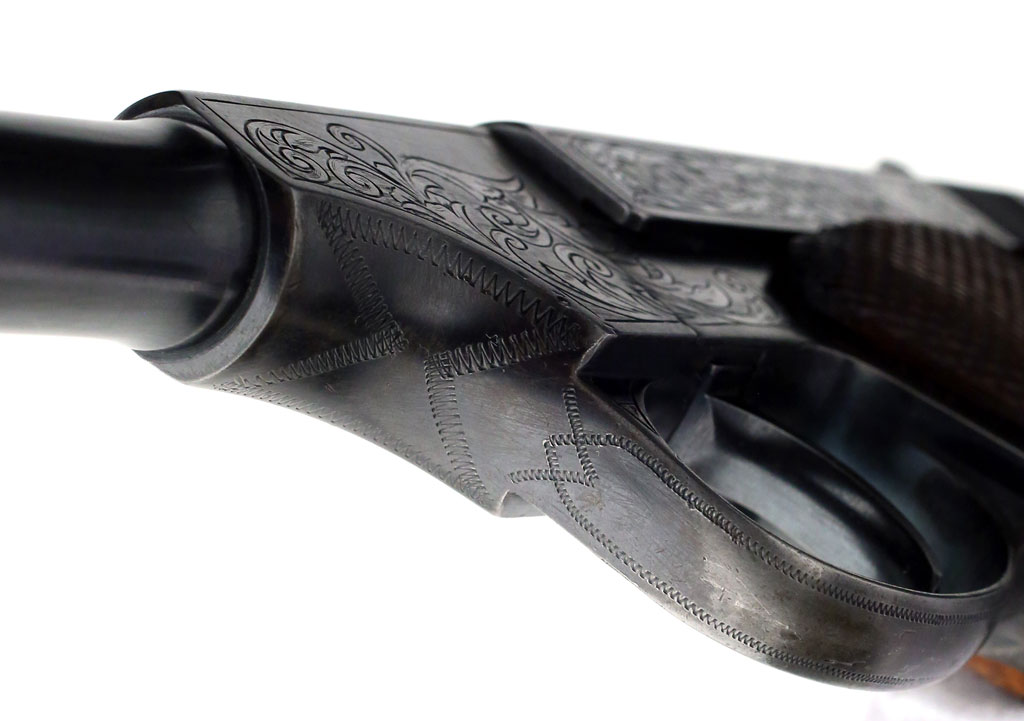 Colt Automatic Target Pistol .22 LR Serial Number 17570 - Gough characteristic zig-zag engraved lined border on underside of frame and trigger guard.