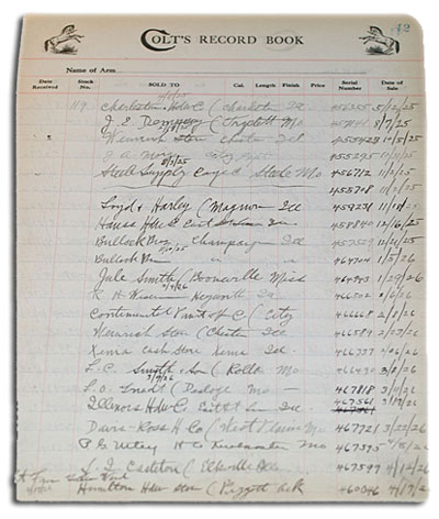 Original shipping ledger page from one of Colt's Regional Distributors.
