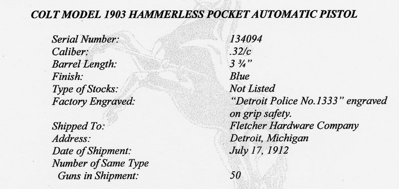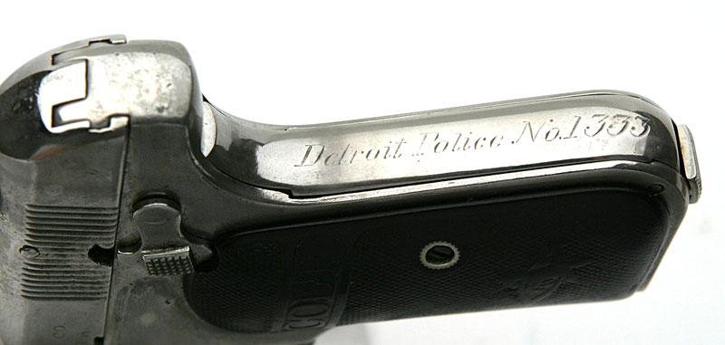 "Detroit Police 1388" inscribed on the grip safety. This number is higher than