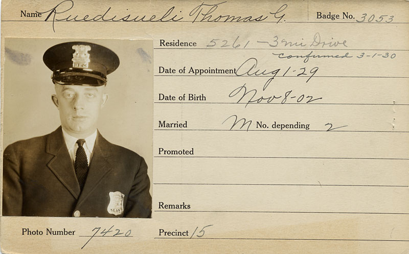 Ruedisueli's son Donald, also a Detroit Policeman requesting