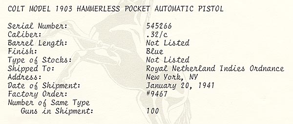 January 20, 1941 in a 100 gun shipment to the Royal Netherland Indies