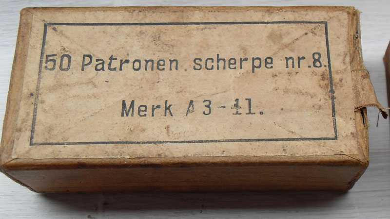 "Patronen scherpe nr. 8" was ammunition for .32 of 7,65mm pistols (Colt .32