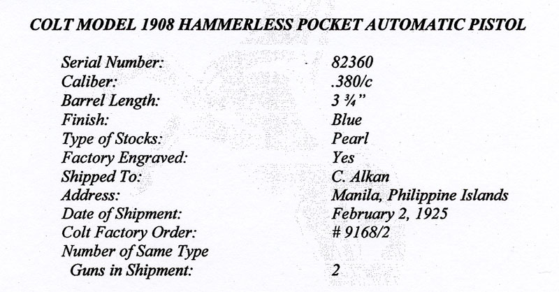 one of two guns shipped to the Philippines. The Colt Factory Letter
