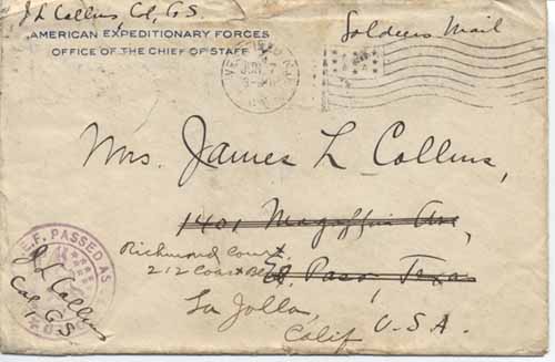 American Expeditionary Forces, France; bottom addressed to Mrs. James L.