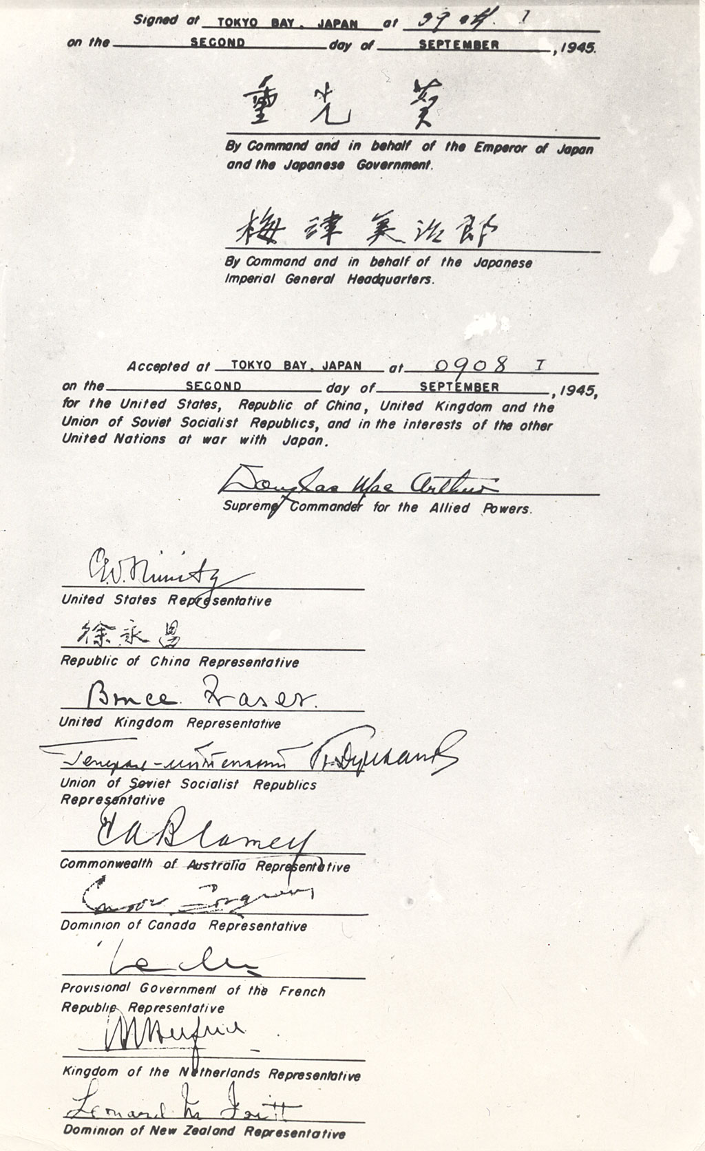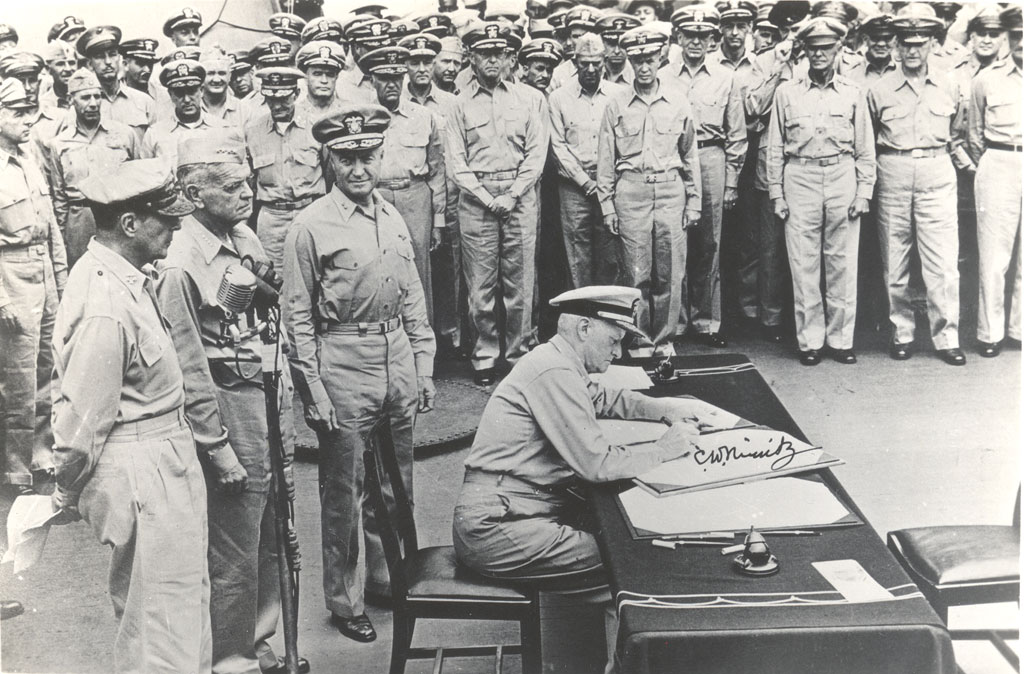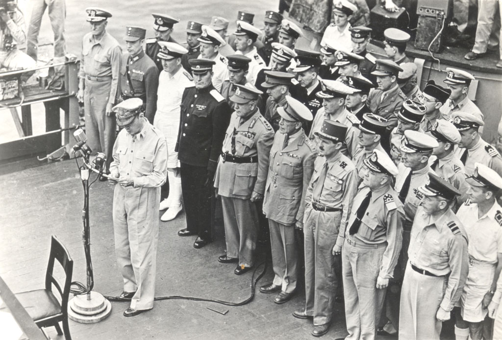 battleship Missouri in Tokyo Harbor on Sept. 2, 1945.