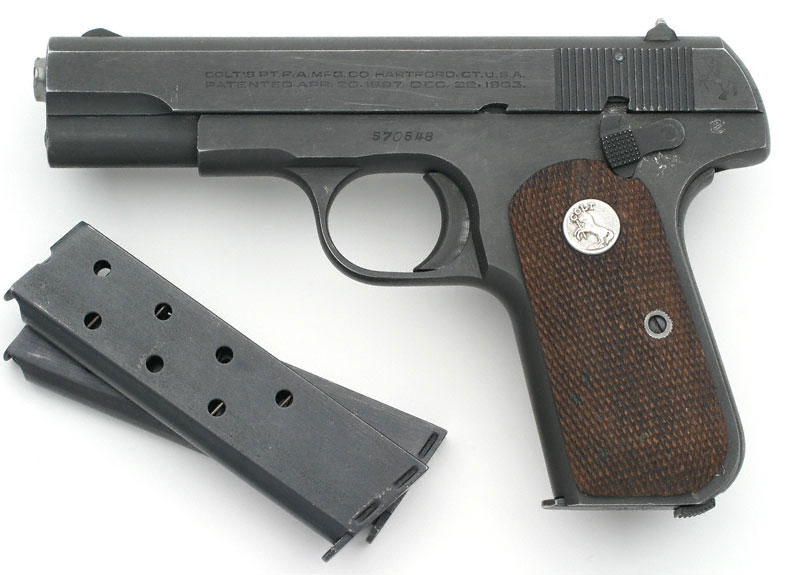 Colt Model 1903 Pocket Hammerless .32 ACP pistol serial number 570548 - Model M .32 pistol issued to General Jacob E. Smart, USAF - In 1951, he was promoted to the rank of Brigadier General and was presented his Colt 1903  .32 ACP caliber sidearm, serial number 570548.  This gun is accompanied by the two spare magazines issued to General Smart.  This pistol was featured in an article entitled The General Officer's Colt Model 1903: This one was issued to an exceptional man. by Mike Venturino in the August, 2010 issue of Guns Magazine.