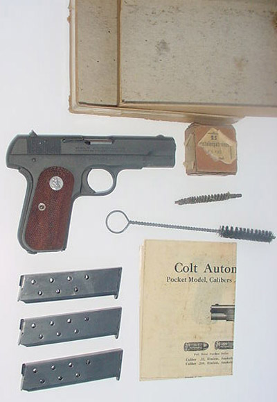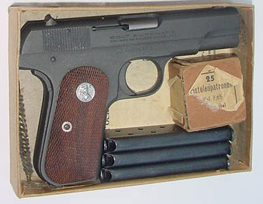 pistol when shipped were a Belgian box of ammo, commercial wire cleaning