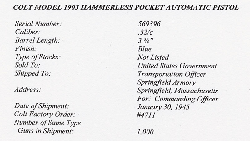 Armory, Springfield, Massachusetts. It was processed on Colt
