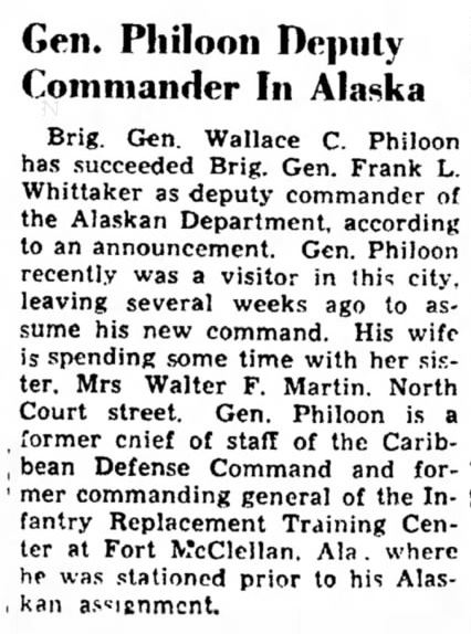 Gen. Philoon Deputy Commander in Alaska